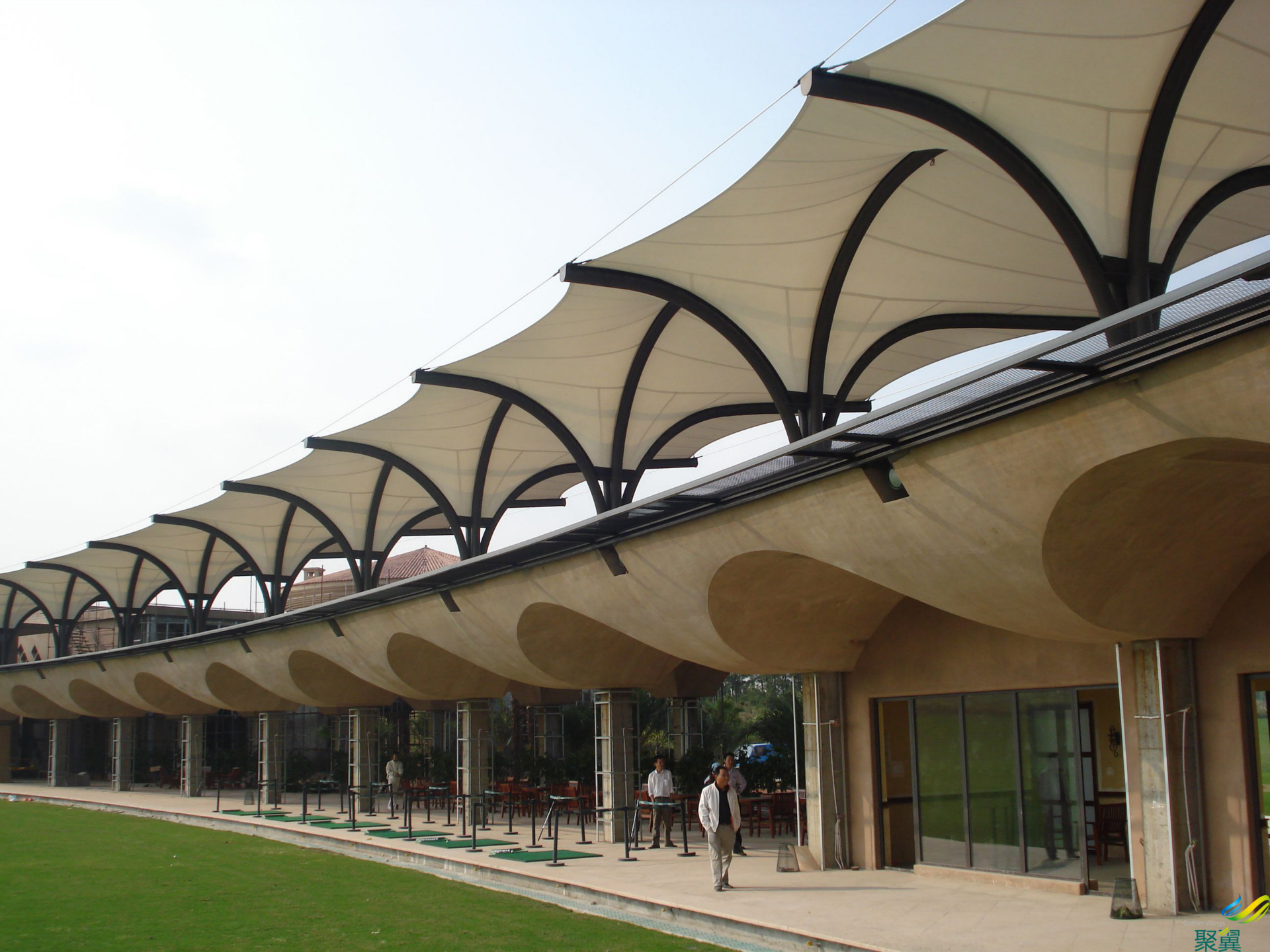 • 上海閔行新加坡外國語學校高爾夫發球臺遮陽棚 景觀遮陽棚