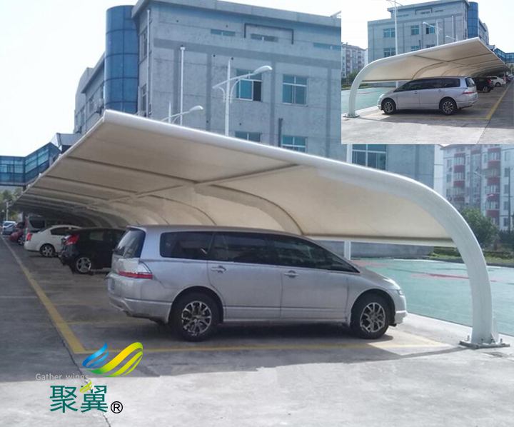 人們在欣賞膜結構車棚建筑時往往驚嘆于它們的氣勢磅礴,而看到膜結構的小品時又會被它們的靈巧、飄逸所深深吸引。