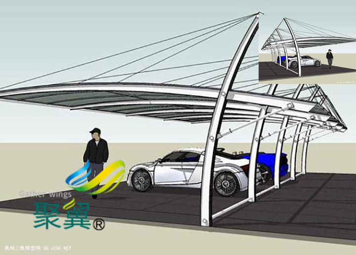 膜結構車棚結實更耐用,因為使用了比較高強度的膜材,再加上目前張拉技術的使用,讓這種車棚的防雨能力更強,目前很多膜結構車棚使用了永久模式的膜材,使用了三四十年都沒有問題,尤其是遇到了劇烈的暴風雨氣候,也不會損壞。