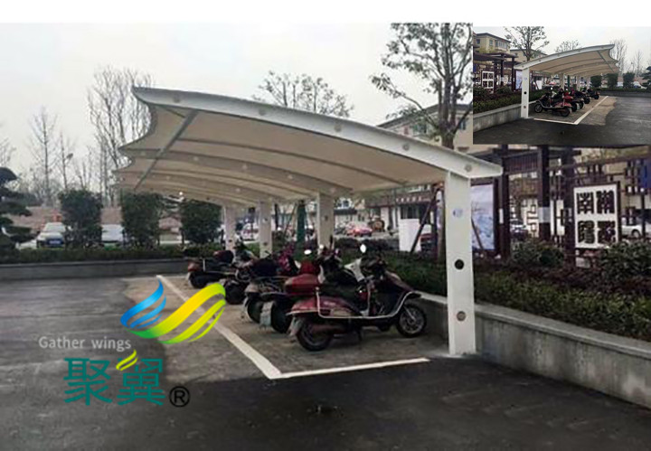 膜結構汽車棚雨棚在實際生活當中有著廣泛的應用,它的使用可以為我們遮擋陽光躲避風雨等等。特別是在一些建筑物的入口處,往往會搭建這種東西來避免風雨和陽光的照射。這種東西的建設往往是一種長期的考慮,正是由于這個特點,所以在建設的時候應該考慮到達到一定的標準,從而確保膜結構汽車棚能夠從各個方面滿足使用者。