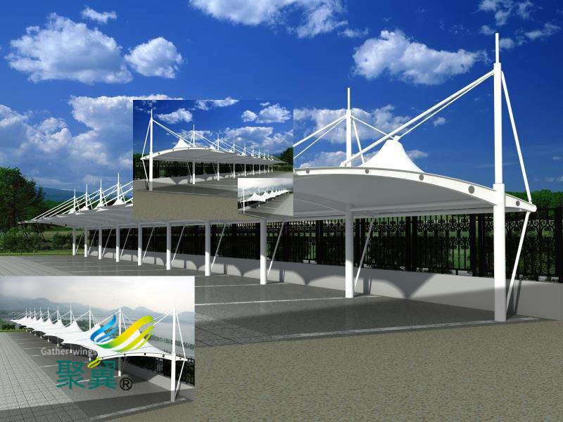 這些不同的膜結構汽車棚,都有其運用的優勢。跟著停車棚運用范疇的擴展,停車棚的功用特色上也在不斷改進。膜結構停車棚:這種停車棚的篷布原料主要是膜結構。
