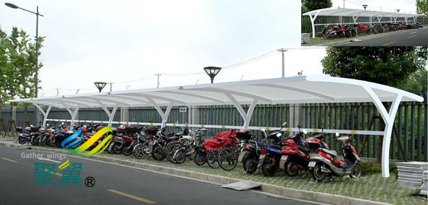 膜結構工藝性好:膜結構車棚膜材是柔性材料 一些用剛性材料難以制造的雜亂的空間曲面,選用膜結構就便利多了。
