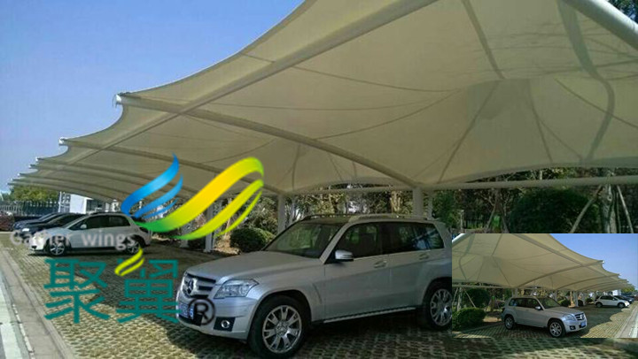 膜式結構車棚本身質量輕、防凍/防震性能好,無需采用內部支撐板,減少了民居建筑在大跨度施工項目中遇到的困難,可以很合理地將其轉化為巨大的無遮擋空間,提升空間具體的套內建筑面積,所以目前也比較普遍地采用膜式結構建造。下面就是由聚翼遮陽為各位朋友介紹膜結構車棚的實用特點和優點。