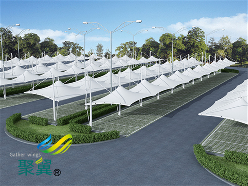 從膜結(jié)構(gòu)的面積、預(yù)應(yīng)力等來(lái)挑選技術(shù)參數(shù)適宜的膜結(jié)構(gòu)遮陽(yáng)雨棚PVC膜材膜材、使膜材即能滿意膜結(jié)構(gòu)建筑需要,又不會(huì)形成浪費(fèi)。