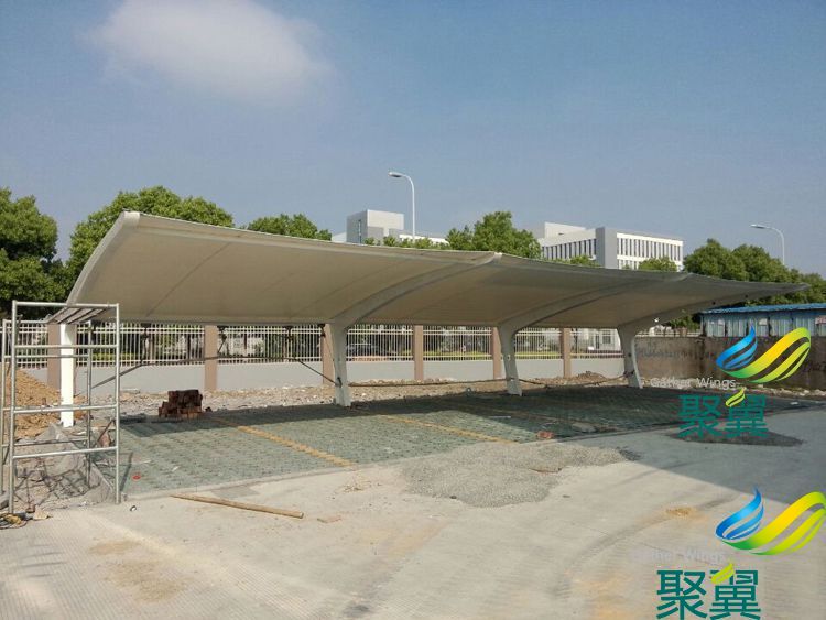 膜結構車棚用材:PVC,PVDF面料,Q235國際鋼骨架。