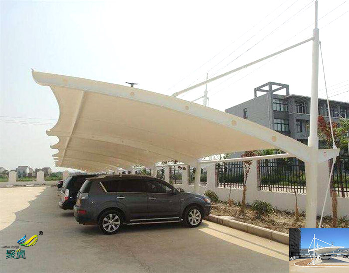 膜結(jié)構(gòu)汽車車棚本身質(zhì)量輕,防凍/防震特性好,無須應(yīng)用內(nèi)部支撐板,減少了民居建筑構(gòu)造在大跨距建設(shè)項目上所碰到的難點,能夠轉(zhuǎn)化成極大的無遮擋空間,十分合理提升了空間具體套內(nèi)建筑面積,因此車棚現(xiàn)階段也較為普遍應(yīng)用膜結(jié)構(gòu)來修建。下列是由膜結(jié)構(gòu)廠家聚翼膜結(jié)構(gòu)工程為各位朋友介紹下膜結(jié)構(gòu)汽車車棚的實際特性和優(yōu)點。