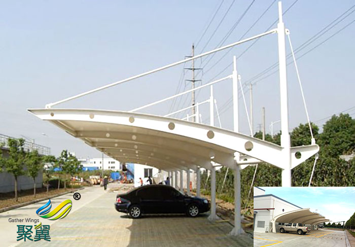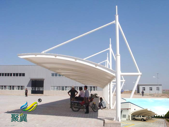 車棚,遍布在咱們生活的各個角落,在很多公眾場合、單位、小區都會安裝很多車棚以供人們停放車輛使用,車棚有很多種,而膜結構車棚以其輕巧別致的造型及優越的性能優點而越來越受人們青睞。下面來談談膜結構車棚施工方案: