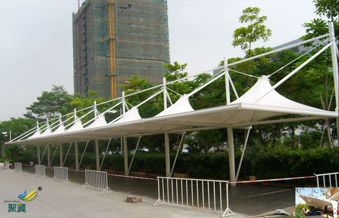 膜結構汽車停車棚工期短:膜建筑工程中所有加工和制作均在工廠內完成,可減少現場施工時間,避免出現施工交叉,相對傳統建筑工程工期較短。膜建筑可廣泛應用于大型 膜結構汽車停車棚公共設施:體育場館的屋頂系統、機場大廳、展覽中心、購物中心、站臺等,又可以用于休閑設施、使用工業設施及標志性或景觀性建筑小品等。