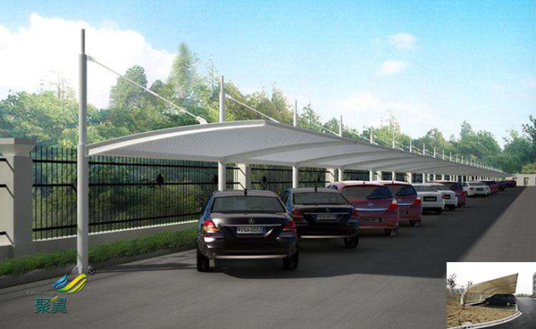 膜結構停車棚輕便性:重量輕,絕對保證棚下人和物的安全。