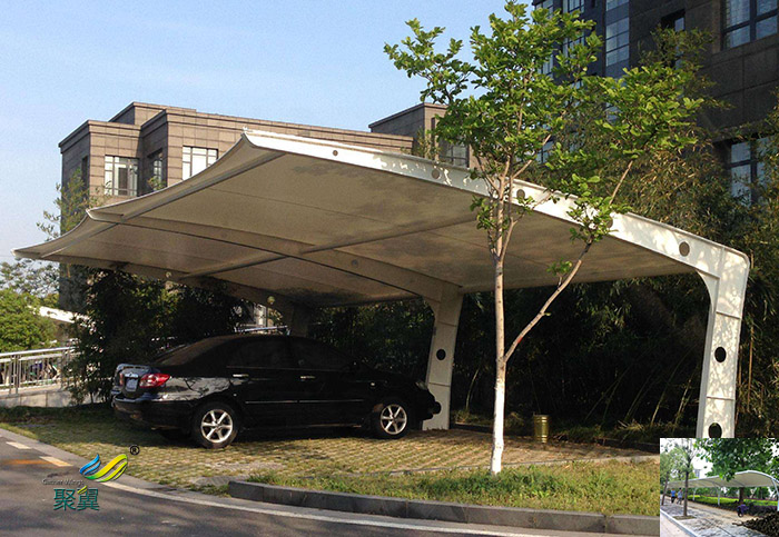 膜結構車棚是近年來在國內開始流行的一種新式的車棚結構。它與以往的舊式車棚相比,結構更加輕盈,而且在使用中比較穩固。它的材料使用了高分子膜結構材料和支撐構件共同組成,并且能根據支撐構件的高低位置不同而呈現不同的形狀。因此在教育,商業,體育館等公共場所都有很廣泛的應用車棚在最初是作為一種能提供給車輛停泊的地方,使車輛避免了直接面對風吹雨打。用來保證自行車,汽車等在車棚下不受損傷。
