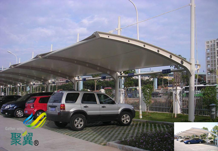 膜結(jié)構(gòu)汽車棚的造型比較獨(dú)特,外觀也比較別致的新型建筑結(jié)構(gòu)。