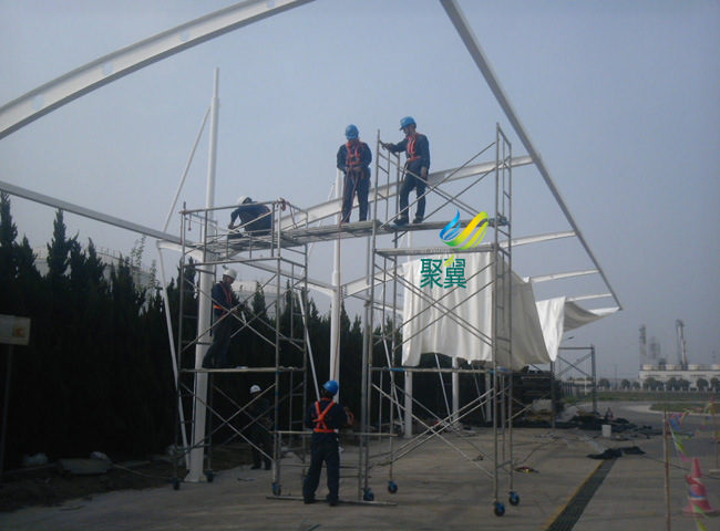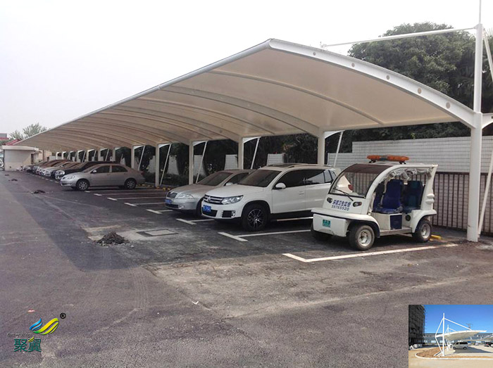 膜結構停車蓬具有重量輕、節省能源、便于運輸、拆裝方便,長久耐用、美觀大方等優點,廣泛地應用在體育館、游泳館等需要自然采光的公共建筑以及需要敞開或半敞開建筑物的遮蔽屋蓋和各種類型的生產廠房與倉庫等。