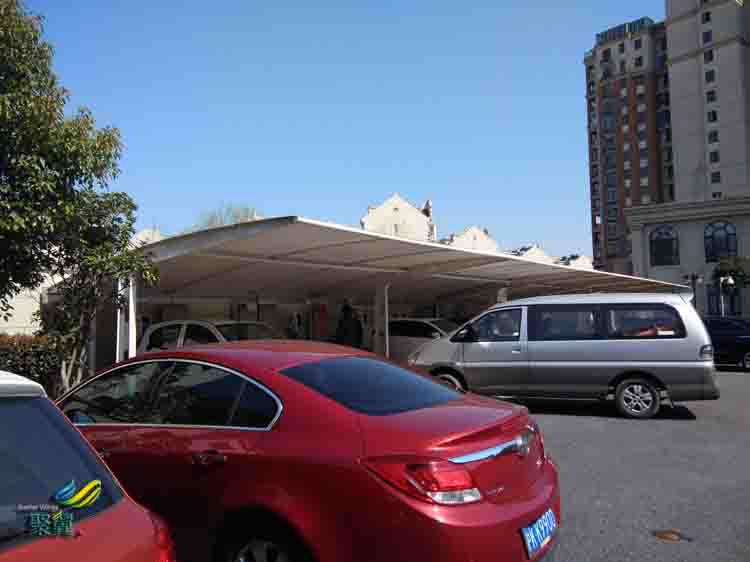 充電站汽車棚或雨棚采用張拉膜結構形式建造具有諸多傳統車棚不可比擬的優點,首先張拉膜車棚造型多樣、且美觀時尚;更重要的是車棚膜材料是一種高強度的織物基材和聚合物涂層構成的復合材料,防火等級為Bl級,屬難燃材料;張拉膜結構的充電站汽車棚/雨棚已在很多城市廣泛應用。   充電站汽車棚一般國產PVC膜材的質保年限為3-5年,而進口PVC膜材的質保年限為5-10年。