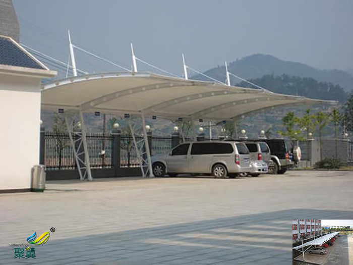 2、非機動停車棚具有更大跨度的建筑空間。由于自身重量輕,膜建筑不需要太多內部支撐面。