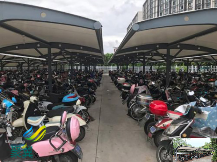 1、膜結(jié)構(gòu)非機(jī)動(dòng)車停車棚舒暢空間-自由的造型多用途
