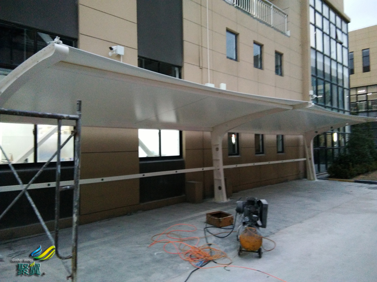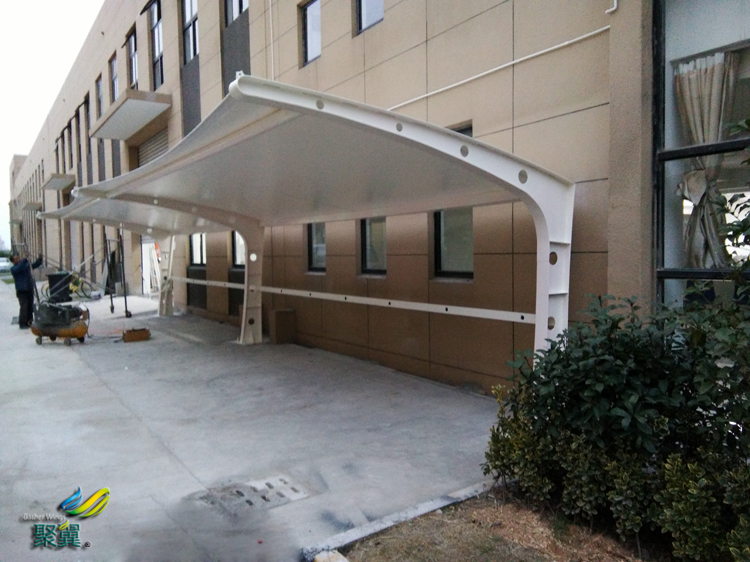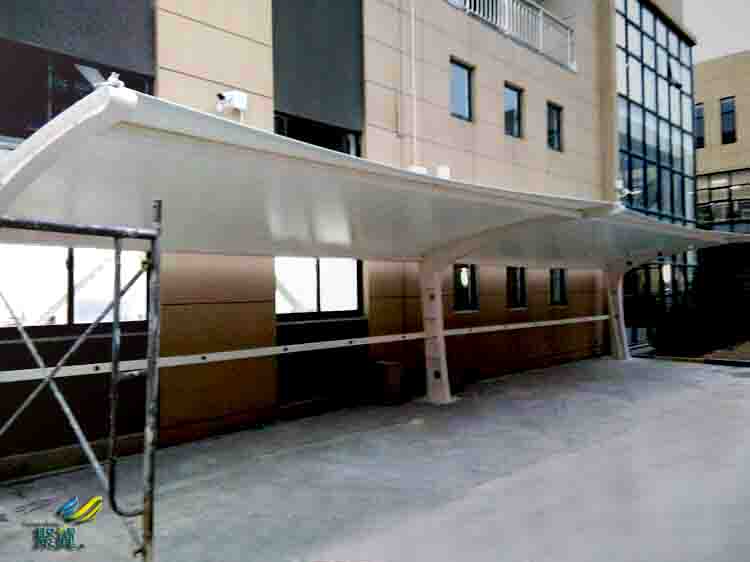 小型自行車棚七子型自行車棚,采用工型鋼和異型鋼焊接安裝,樣式簡單不失大氣,采用白色膜材,經過時間的洗禮不會發黃,尤其是遇到了劇烈的暴風雨氣候,也不會損壞,給愛車一個安全的呵護。使車棚變得煥然一新,這也是小型自行車棚七子型自行車棚膜材本身透露出的性能自潔性。
