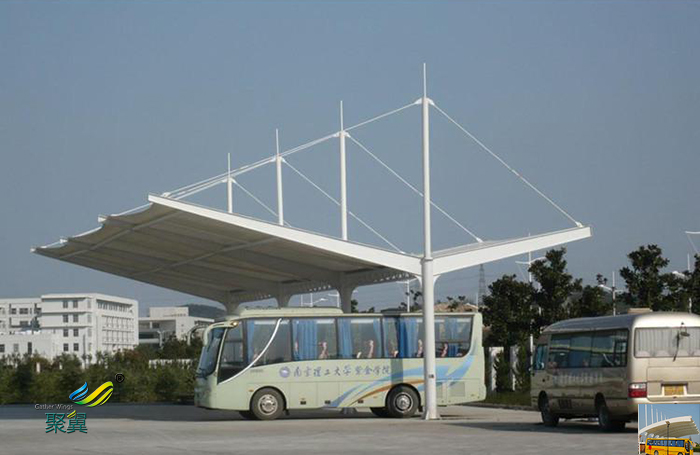 大巴車露天光伏停車棚是由多種高強薄膜材料及加強構(gòu)件(鋼架、鋼柱或鋼索)通過一定方式使其內(nèi)部產(chǎn)生一定的預(yù)張應(yīng)力以形成某種空間形狀,作為覆蓋結(jié)構(gòu),并能承受一定的外荷載作用的一種空間結(jié)構(gòu)形式。是市民停放自行車的固定場所。