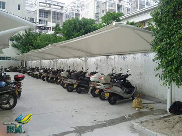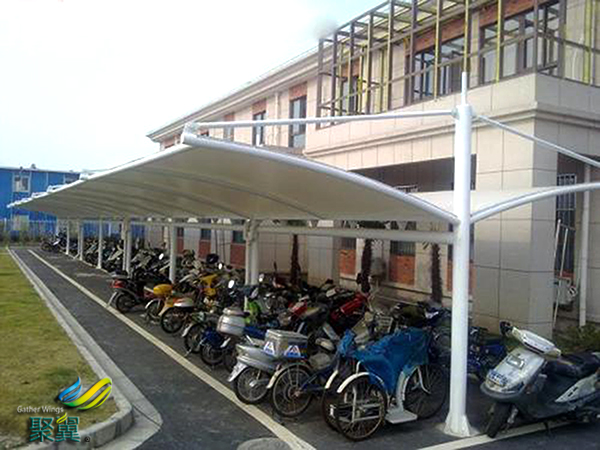 自行車棚遮陽棚作為城市公交設施綠色出行的一部分,是市民停放自行車的固定場所,自行車棚遮陽棚的建設單位打造城市低碳交通,為了還城市一個健康清新的環境,市民要加強意識,從而達到減少低碳元素類,特別是二氧化碳的排放量,從而減少對大氣的污染,減緩生態惡化,市政府應設立自行車棚,為市民能實現綠色低碳環保的環境提供場所。自行車棚遮陽棚是建筑結構中最新發展起來的一種形式,自從1970年代以來,膜結構在國外已逐漸應用于體育建筑、商場、展覽中心、交通服務設施等大跨度建筑中。
