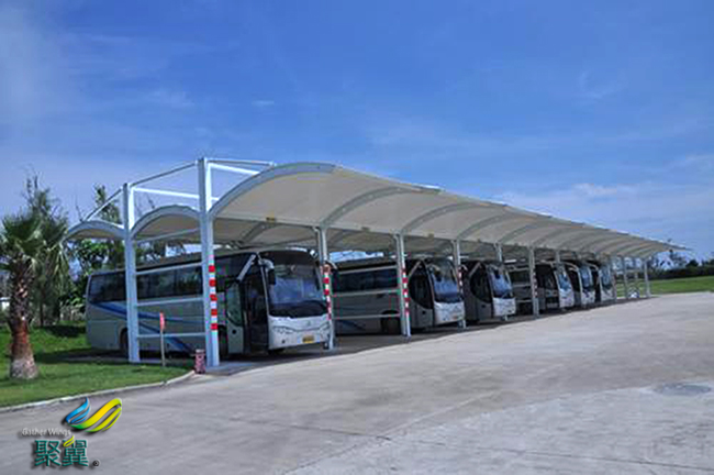 這里要注意的是,洗滌液使用堿性洗滌液,酸性的會對大巴膜結構停車棚的外部造成損害。
