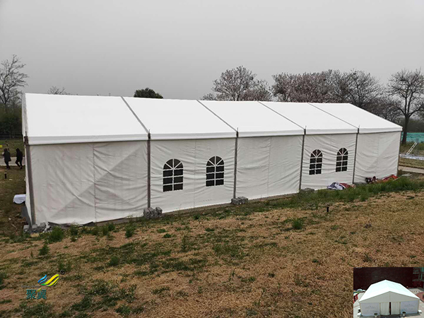 2、 倉庫篷房適應性強,對環境的要求不是很高,一般的地面均可搭建。即便是普通的草地、水泥地等均可搭建。