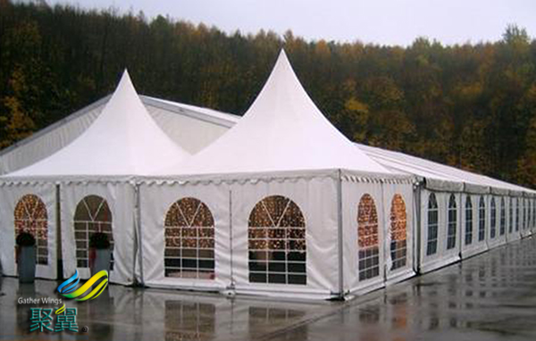 由于固定建筑的場地面積限制,很多慶典活動我們不得不在戶外進行,但是戶外的天氣不固定,晴天還好如果遇到雨雪天氣戶外活動不得不取消,這時候各種各樣的戶外活動場所進入到我的選擇范圍,慶典篷房是應用最為廣泛的戶外活動場所。